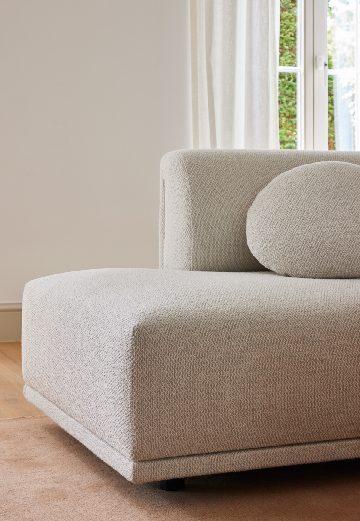 Opvallend is het ontbreken van zichtbare pootjes. In plaats daarvan lijken banken te zweven, met een subtiel verzonken plint of verborgen basis. Dit geeft het meubel een minimalistische en architectonische uitstraling, terwijl het tegelijkertijd rust brengt in het interieur.